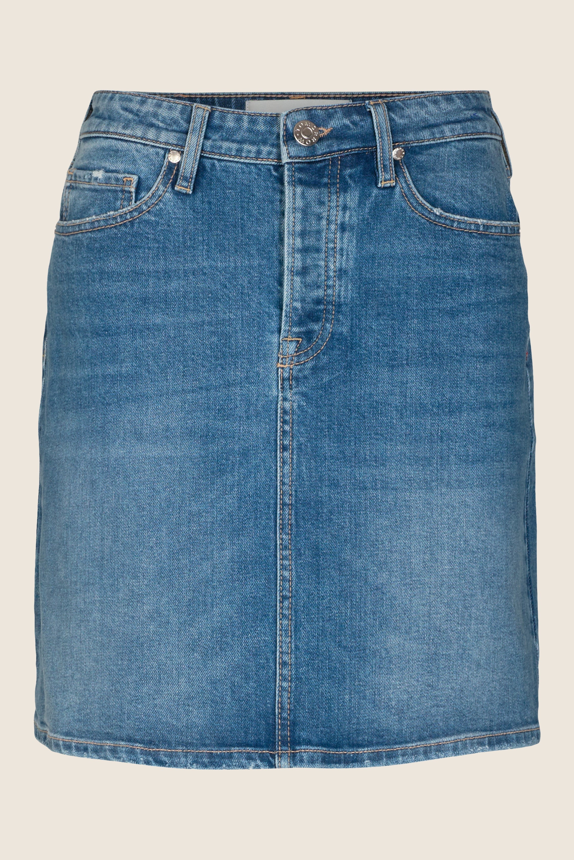This 5-pocket denim skirt is a classic A-shape in mini length. The original light denim fabric is washed in an authentic vintage look.