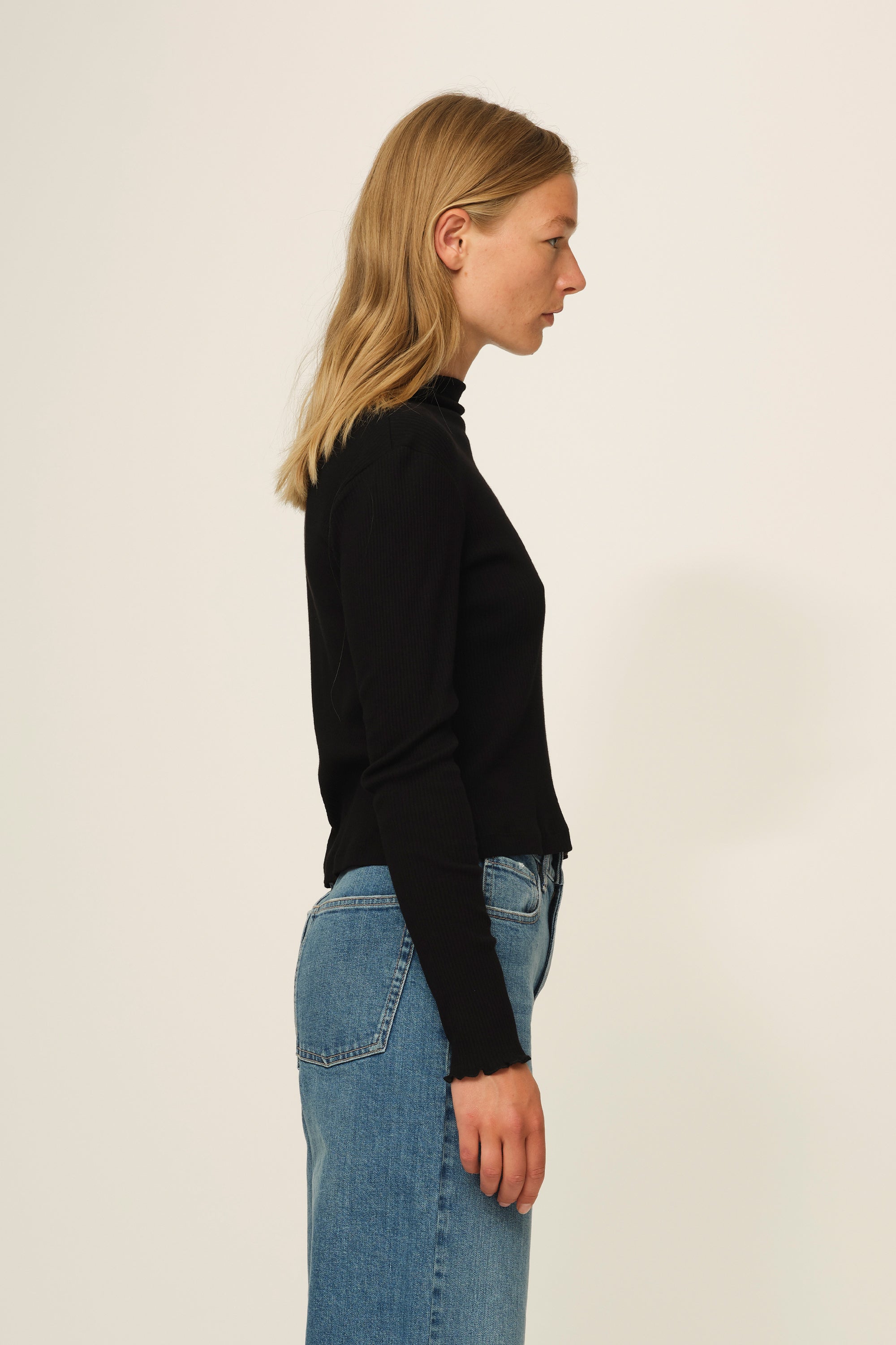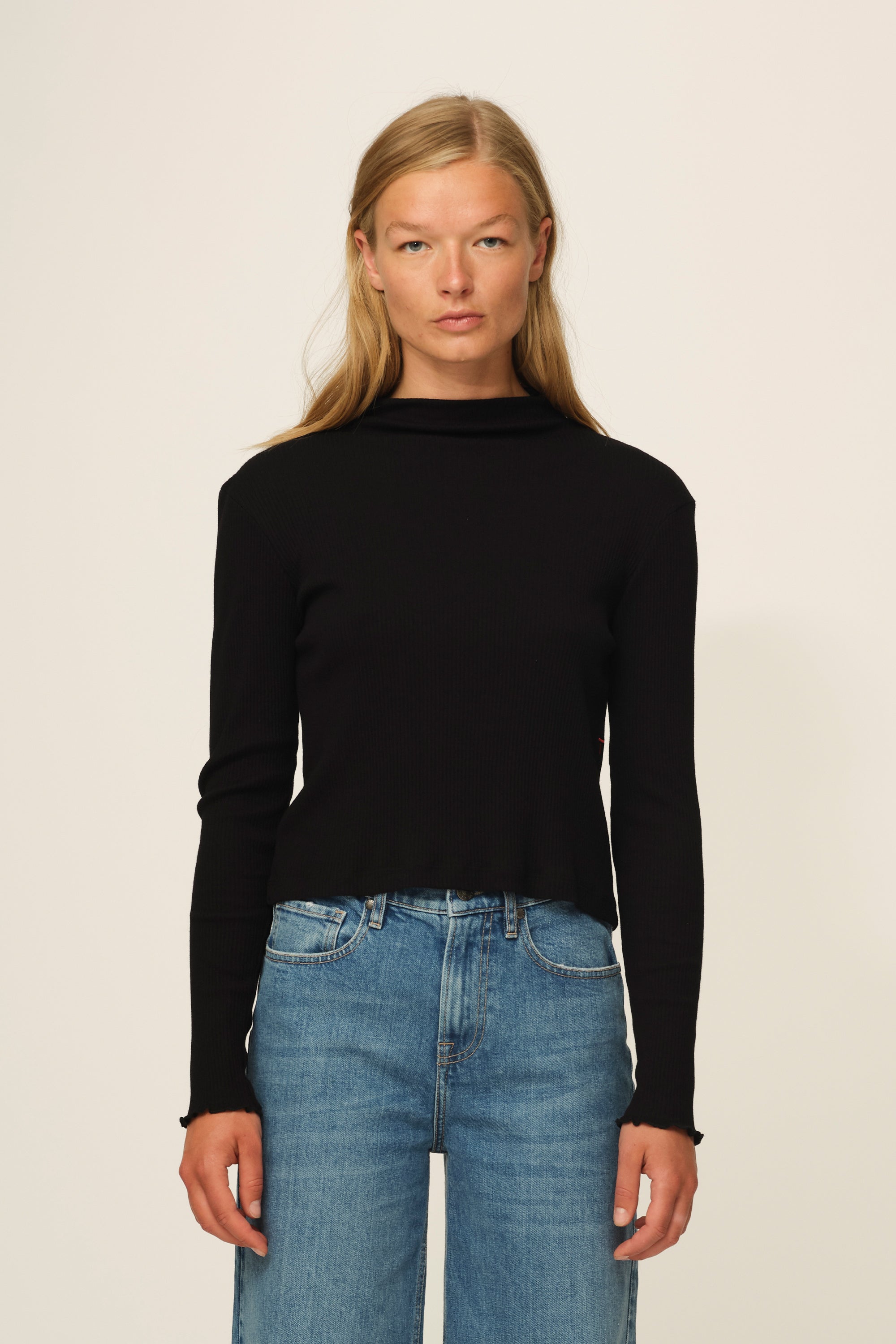 This long sleeve t-shirt is made from ribbed soft cotton-jersey and have a slim fit with turtleneck. Designed to be the perfect match for your favorite jeans.