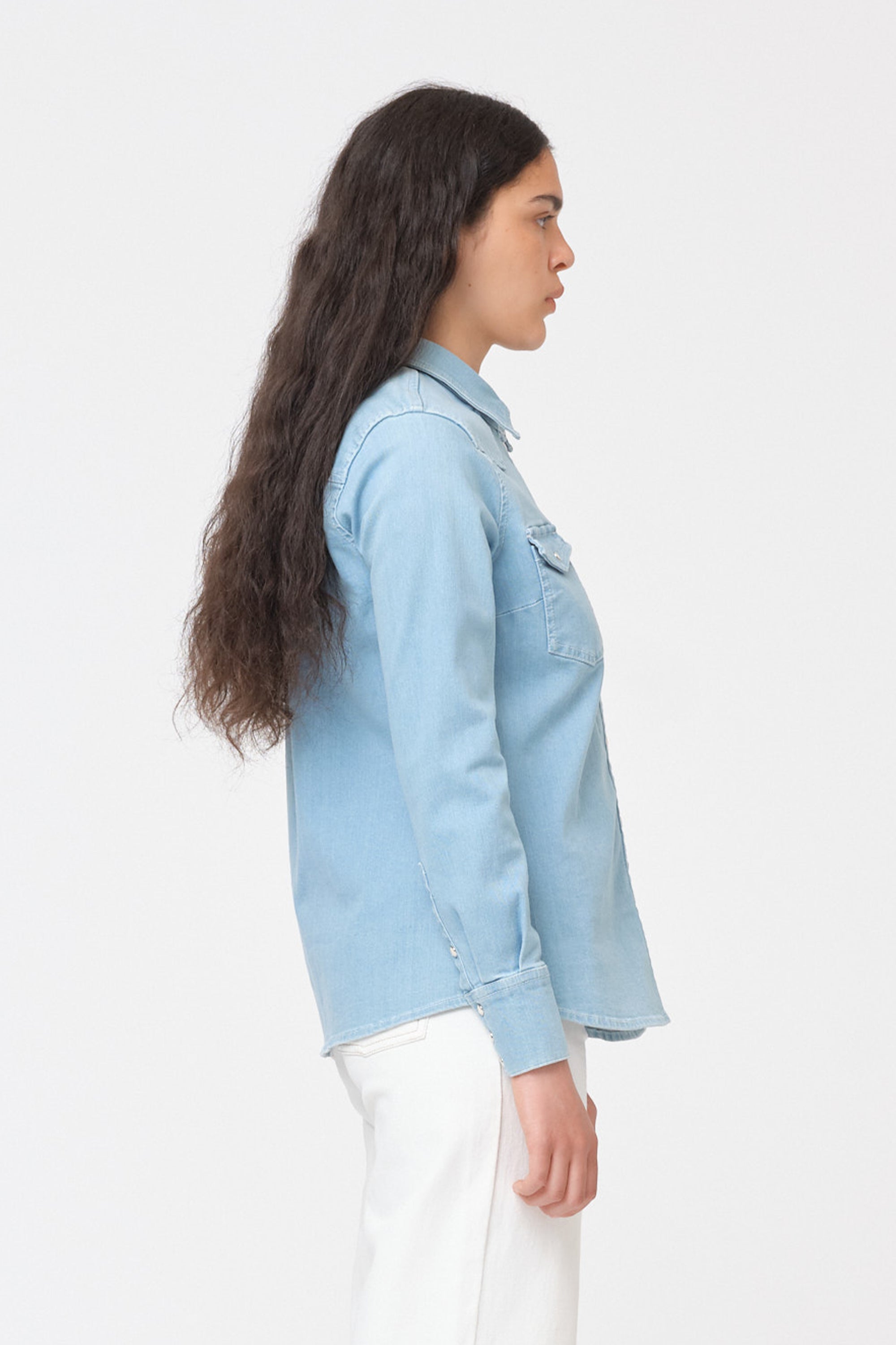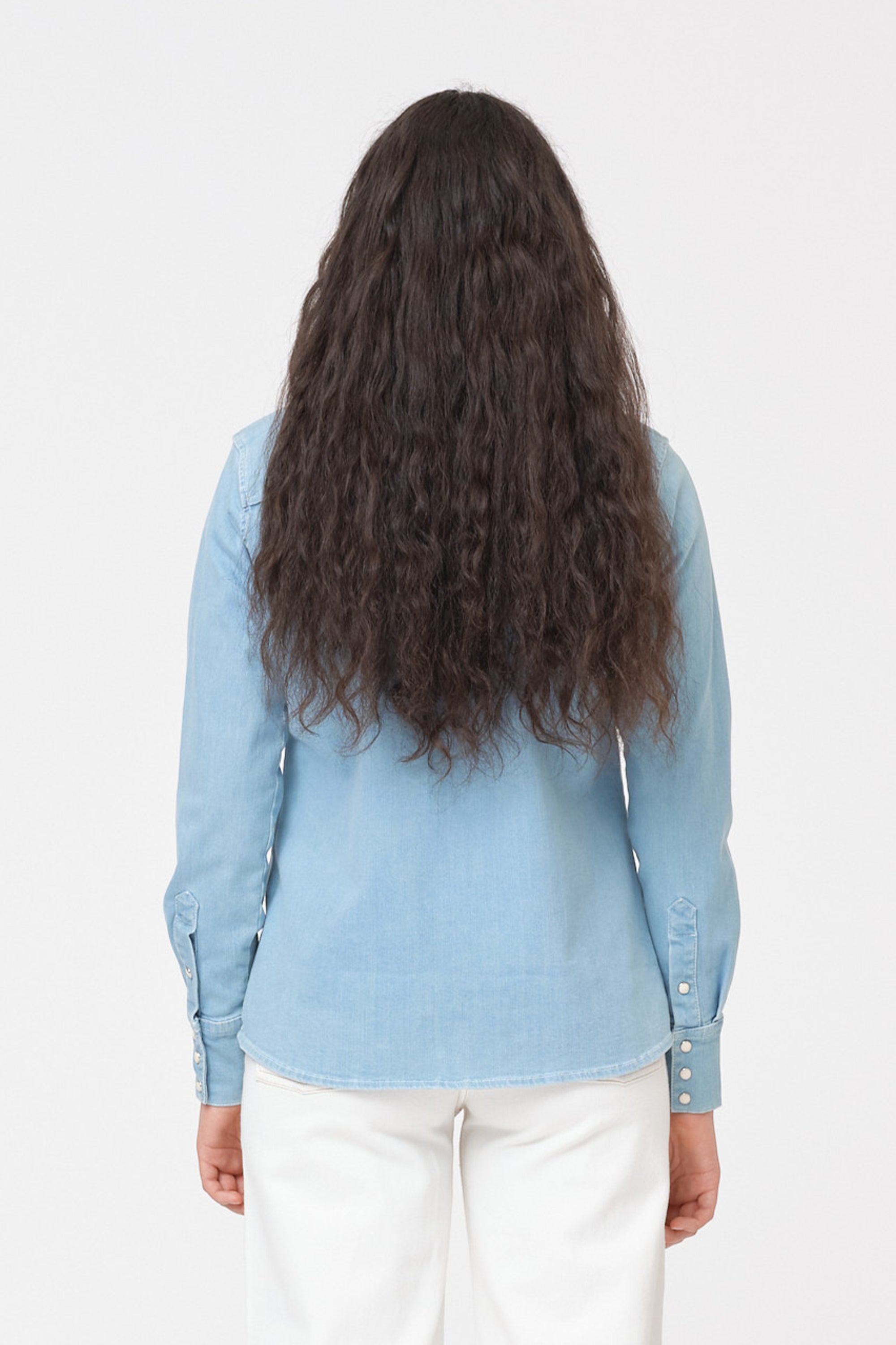 This shirt is designed for a slightly loose fit and button closure through front. Comes with breast pockets and details at the upper shoulders.